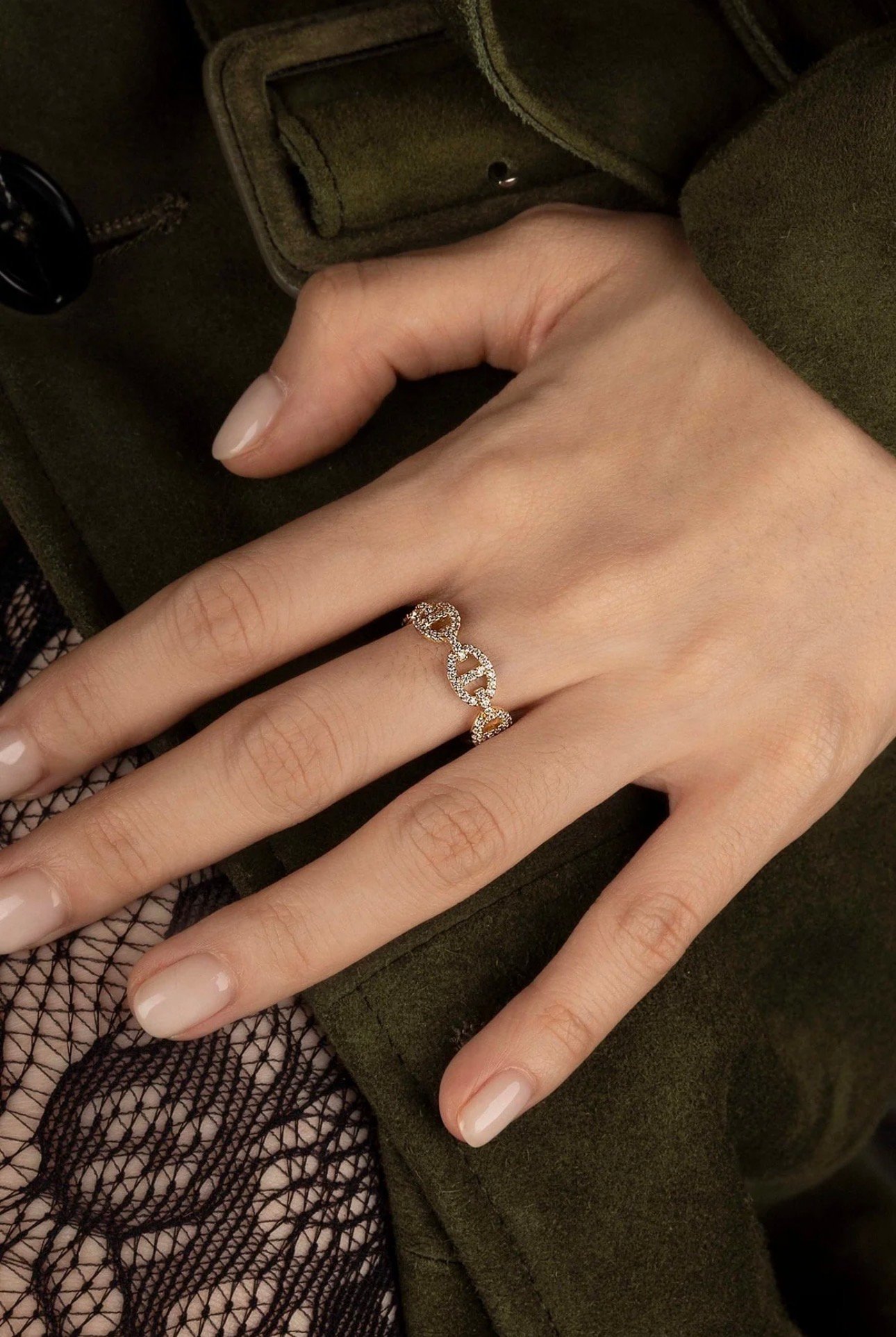 خاتم مايلي مارين من APM Monaco بتصميم فخم يلفت الأنظار، يجمع بين اللمعة الفاخرة والفخامة العصرية.